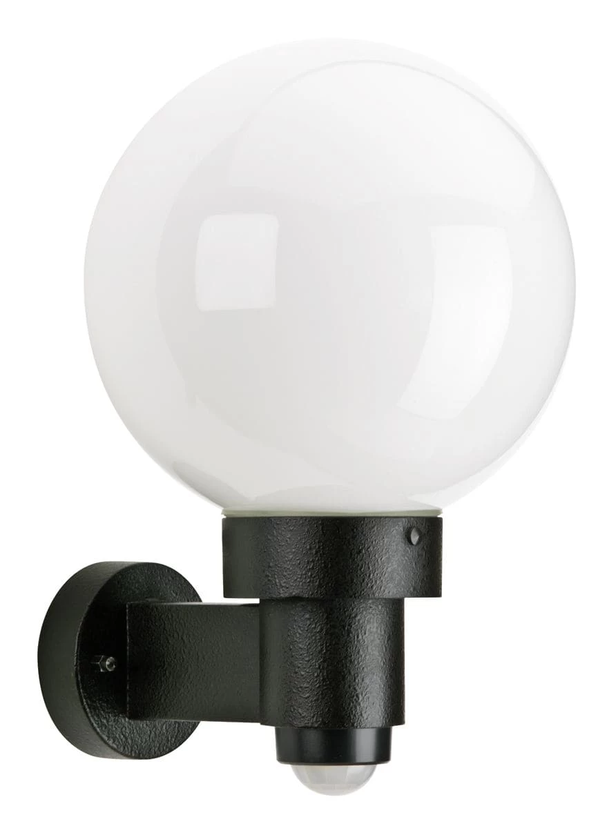 Wandleuchte für Innen- und Aussenbereich mit einer Opalglaskugel und Montageplatte