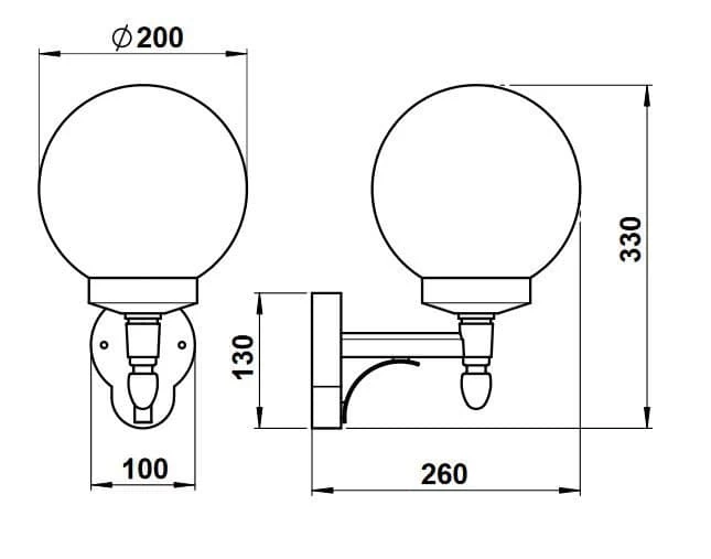 Wandleuchte für Innen- und Aussenbereich mit klarer Blasenglaskugel.