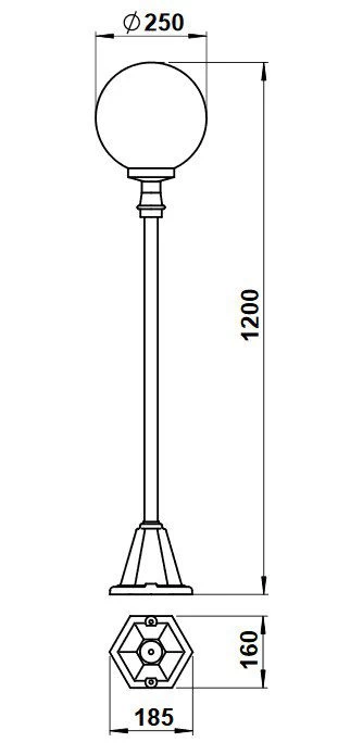 Wegeleuchte für Terrasse und Garten mit Kugel aus klarem Blasenglas
