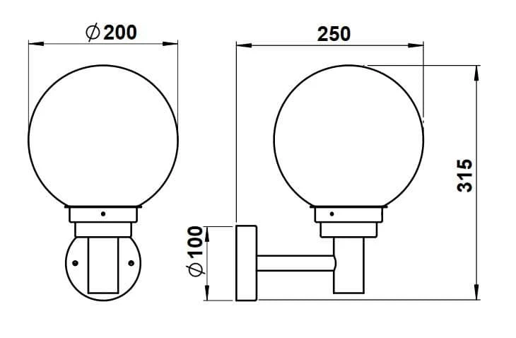 Wandleuchte für Innen- und Aussenbereich mit einer Opalglaskugel und Montageplatte