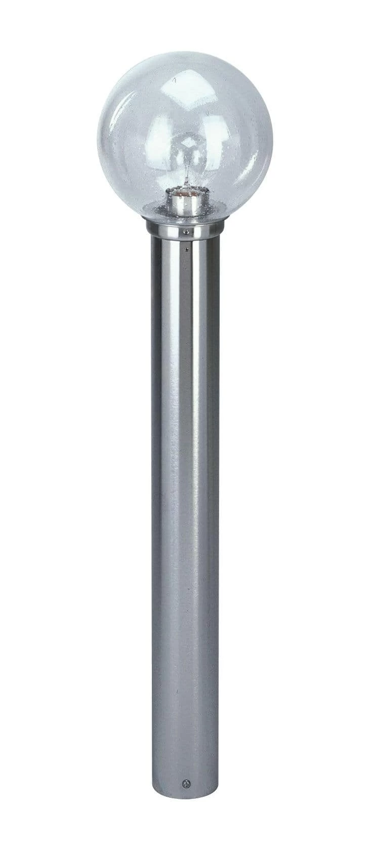Pollerleuchte für Terrasse und Garten mit Kugel aus klarem Blasenglas