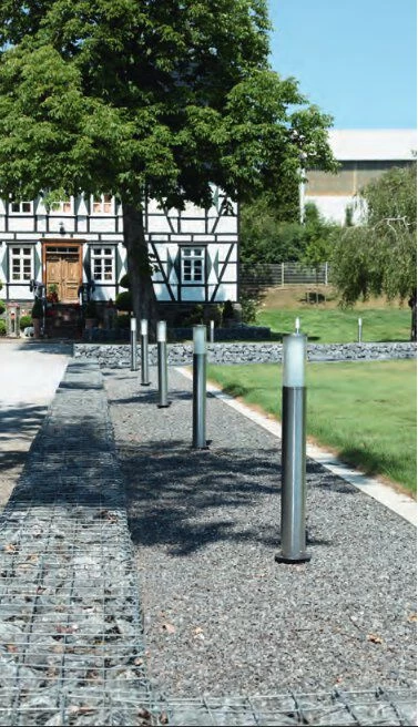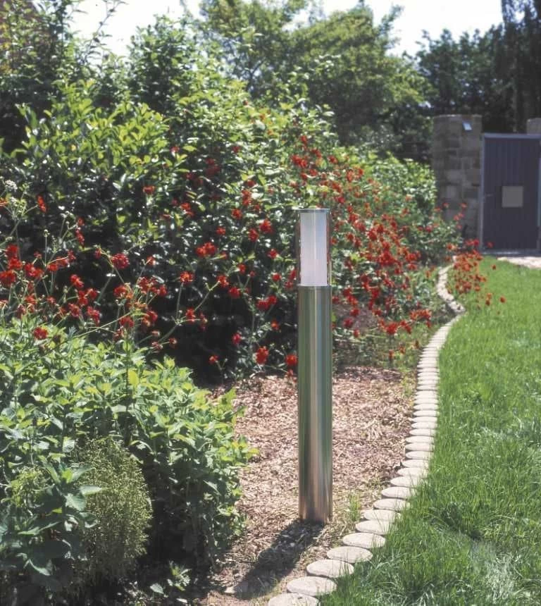 Moderne Edelstahl-Pollerleuchte für Terrasse und Garten mit E27 Fassung, für die Bestückung mit eigenen Leuchtmitteln
