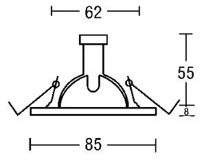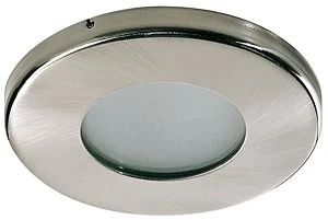 NV-Einbaudownlight rund mit erhöhter Schutzart, starr, Deckeneinbau über Spannfeder.