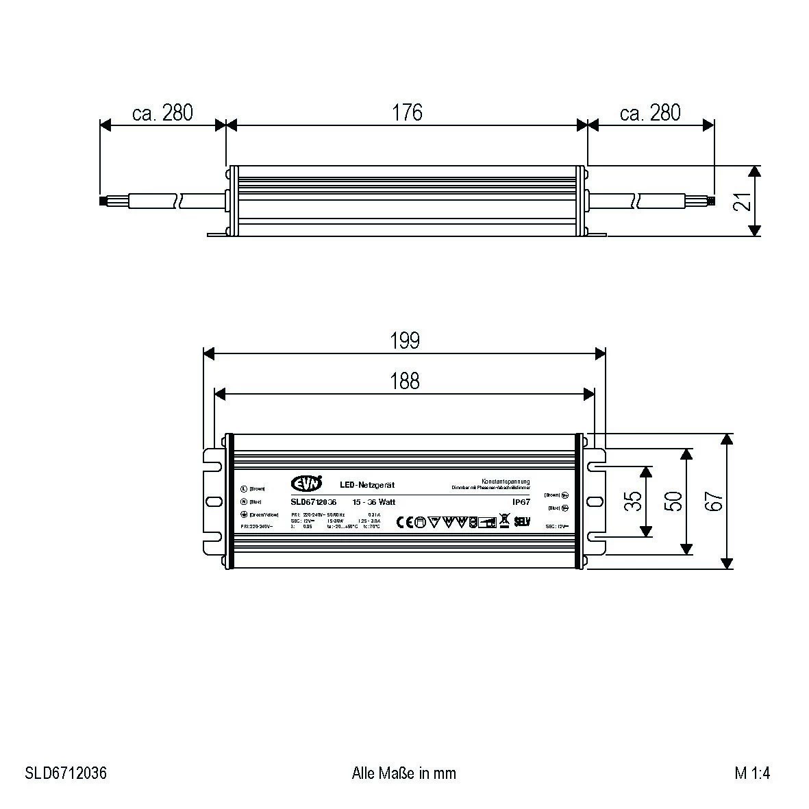 Der kurzschlussfeste Sicherheitstransformator lässt sich auf Grund der höheren Schutzart problemlos im Außenbereich einsetzen, kann aber z. B. auch beim Möbelbau verwendet werden, da die Kennzeichnung MM gegeben ist. Bei Verwendung eines LED-Dimmers mit einer Mindestlast von max. 3W beträgt der Dimmbereich 100 – 0%, bei Verwendung eines LED-Dimmers mit höherer Mindestlast besteht ggf. ein verringerter Dimmbereich. Die Anschlussleitungen haben eine Länge von 29cm primärseitig und 29cm sekundärseitig.