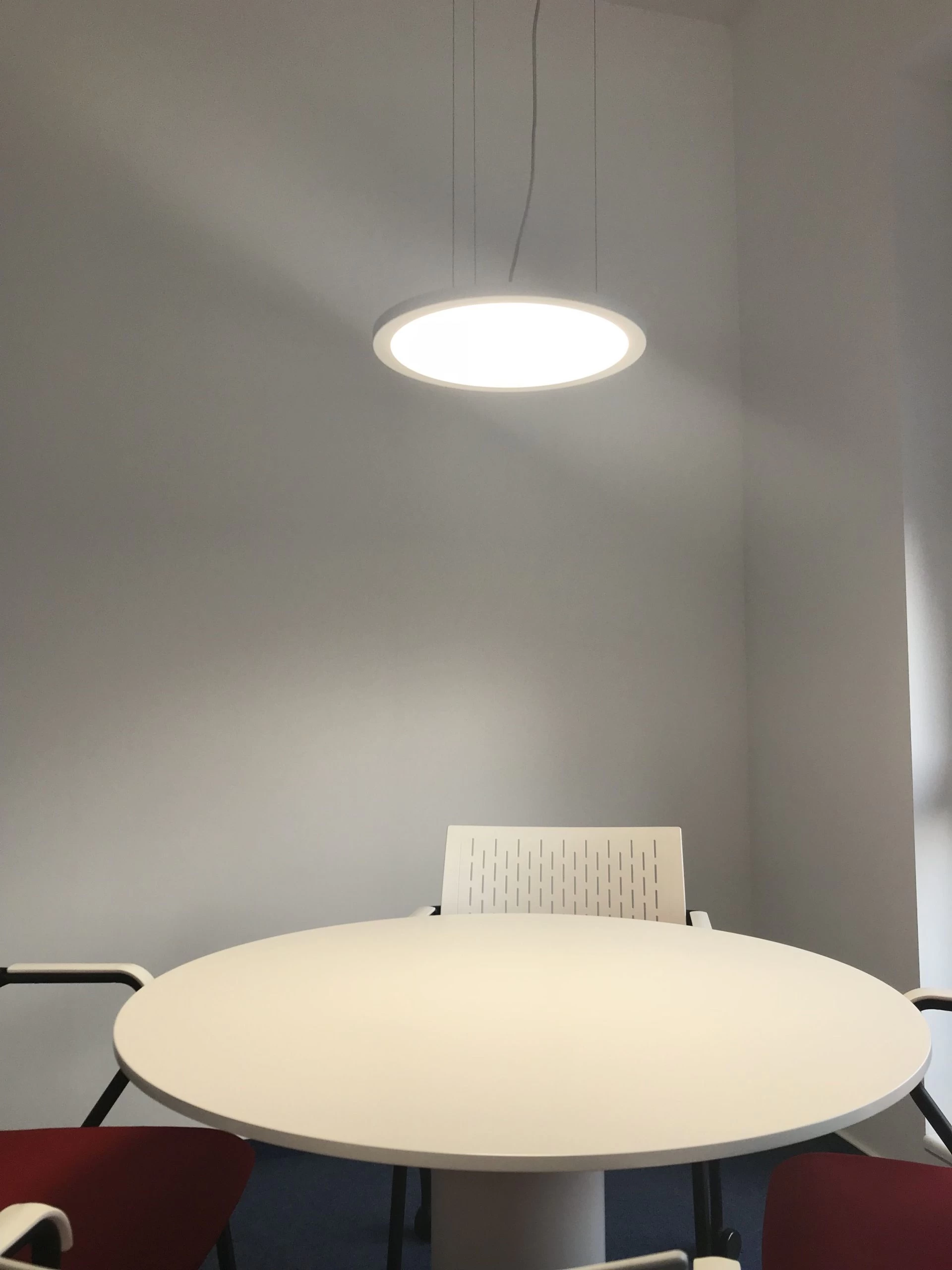 harmonische lichtstarke Lichtlösung auch für Warteräume, Aufenthaltsräume, runde Besprechungstische u.s.w.