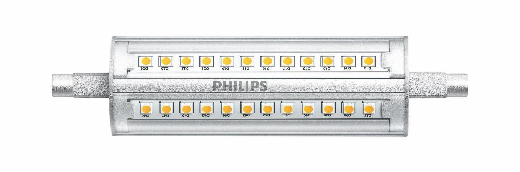 CorePro R7S ist eine Nachrüstlösung als Ersatz für herkömmliche zweiseitig gesockelte R7S-Stablampen. Ihr Licht nach dem “Light all around”-Konzept ist mit dem einer Halogenlampe vergleichbar. Innerhalb des Sortiments können Sie dimmbare Produkte mit Tiefen-Dimmfunktion wählen, durch die eine gemütliche Atmosphäre geschaffen werden kann, wenn diese Lampe in eine dimmbare Leuchte eingesetzt wird.