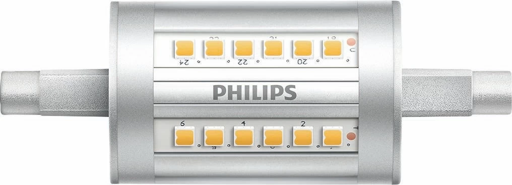 CorePro R7S ist eine Nachrüstlösung als Ersatz für herkömmliche zweiseitig gesockelte R7S-Stablampen. Ihr Licht nach dem “Light all around”-Konzept ist mit dem einer Halogenlampe vergleichbar. Innerhalb des Sortiments können Sie dimmbare Produkte mit Tiefen-Dimmfunktion wählen, durch die eine gemütliche Atmosphäre geschaffen werden kann, wenn diese Lampe in eine dimmbare Leuchte eingesetzt wird.