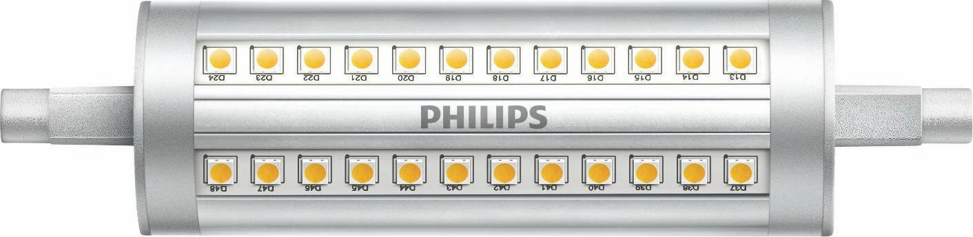 CorePro R7S ist eine Nachrüstlösung als Ersatz für herkömmliche zweiseitig gesockelte R7S-Stablampen. Ihr Licht nach dem “Light all around”-Konzept ist mit dem einer Halogenlampe vergleichbar. Innerhalb des Sortiments können Sie dimmbare Produkte mit Tiefen-Dimmfunktion wählen, durch die eine gemütliche Atmosphäre geschaffen werden kann, wenn diese Lampe in eine dimmbare Leuchte eingesetzt wird.