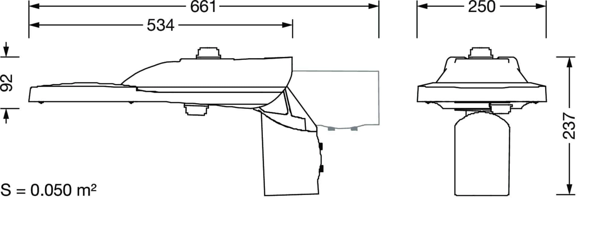 Streetlight 31 mini, asymmetrisch breit strahlend, Ansatz und Aufsatzmontage, 9000lm, 60W, IP66, inkl. Mastflansch 60/76mm