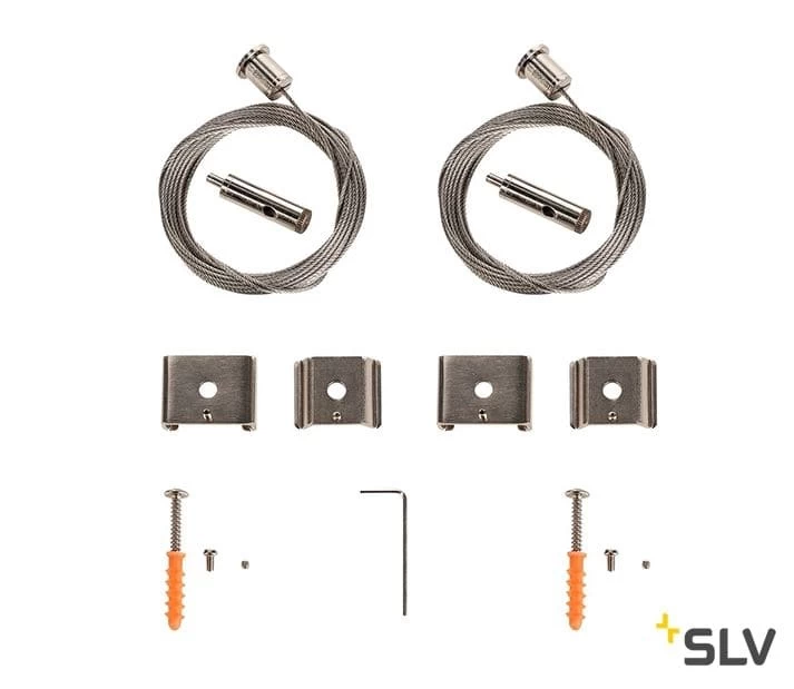 Zweier Set universal Drahtseilabhängung, für EUTRAC®, S-TRACK und 1 Phasen- Schienen mit einer Seillänge von 5m.