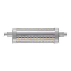 Das transparente 15W SLV SMD LED Leuchtmittel mit R7S 118mm Sockel und QT DE12 Form ist dimmbar, hat einen einen CRI-Wert von 90, 800 Lumen sowie eine Lebensdauer von 25.000 Stunden. Diese Version hat einen Abstrahlwinkel von 330° und hat 3.000 Kelvin.