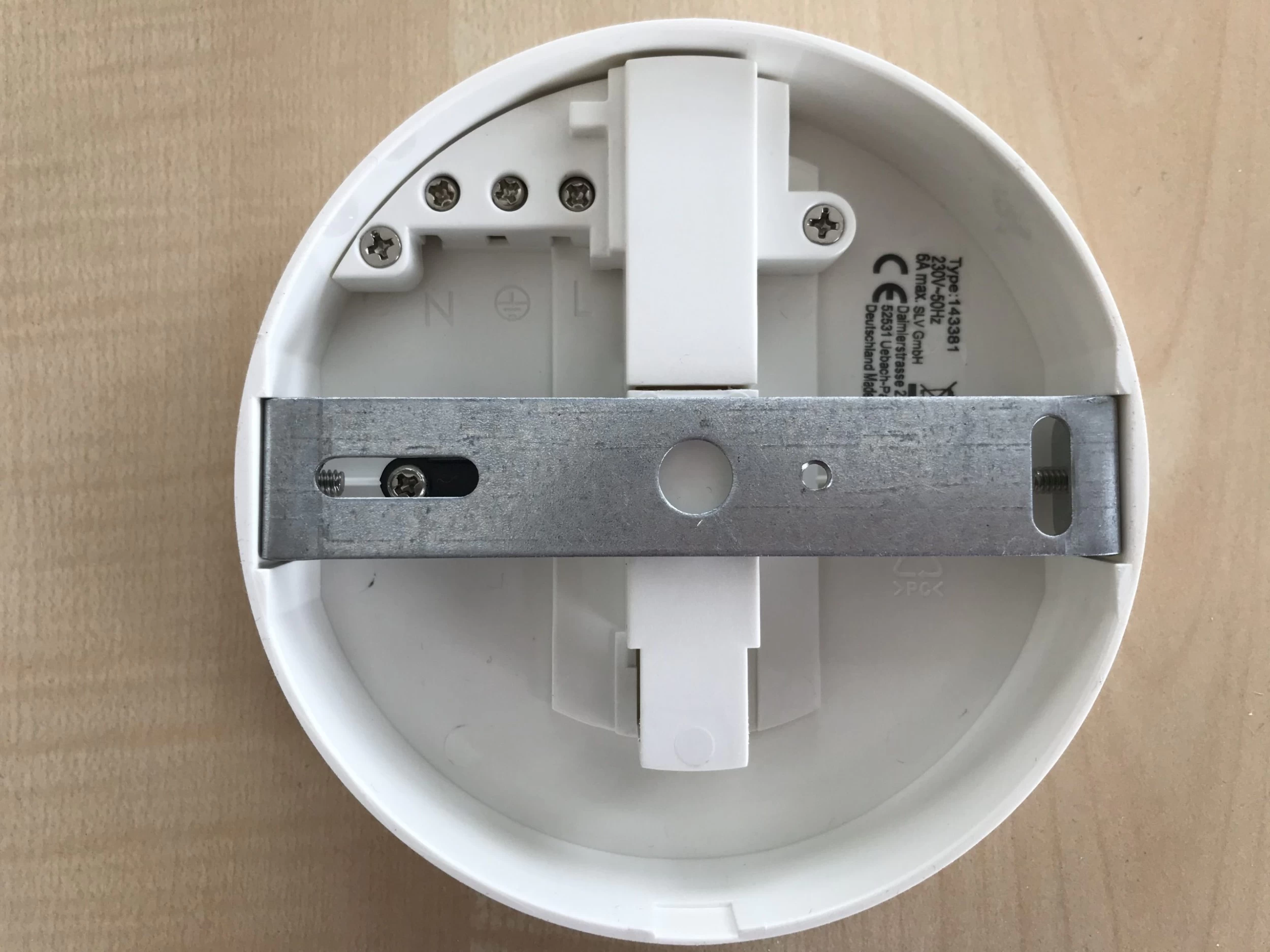 Deckenrosette zur Aufnahme von Leuchten mit verbautem 1Phasen Hochvolt-Schienen Adapter.