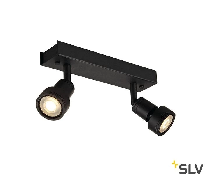 Wand- und Deckenleuchte der PURI Serie bei der die je nach Version ein bis drei Leuchtenköpfe dreh- sowie schwenkbar an der leuchtenfarbenden Rosette montiert sind.