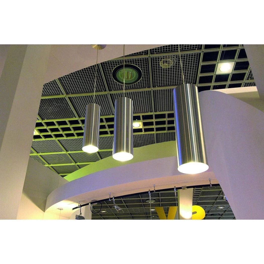 Die ENOLA Pendelleuchte ist aus Aluminium gefertigt und besteht aus einem nach unten gerichteten Zylinder.