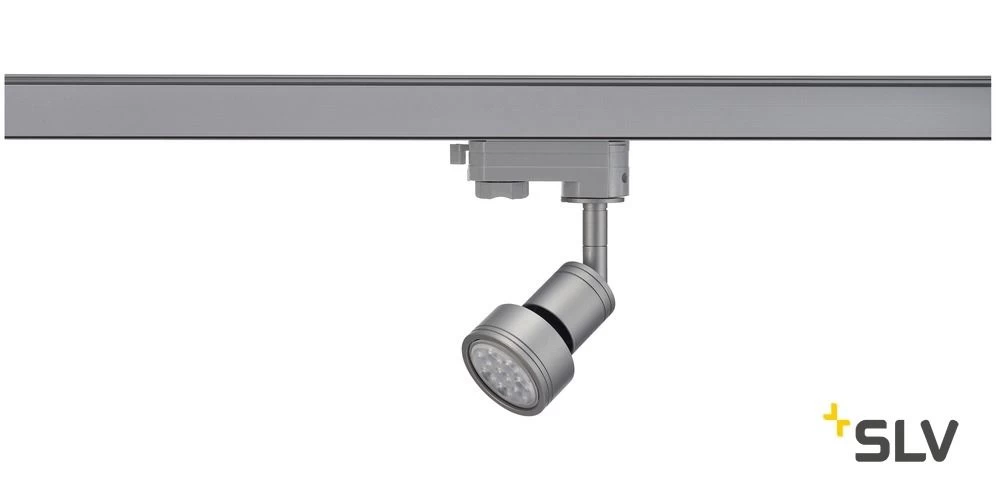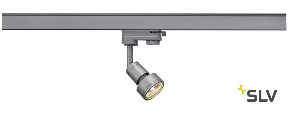 Dreh- und schwenkbarer Strahler für Hochvolt-Stromschiene 3Phasen, GU10-Fassung, silbergrau max. 50W