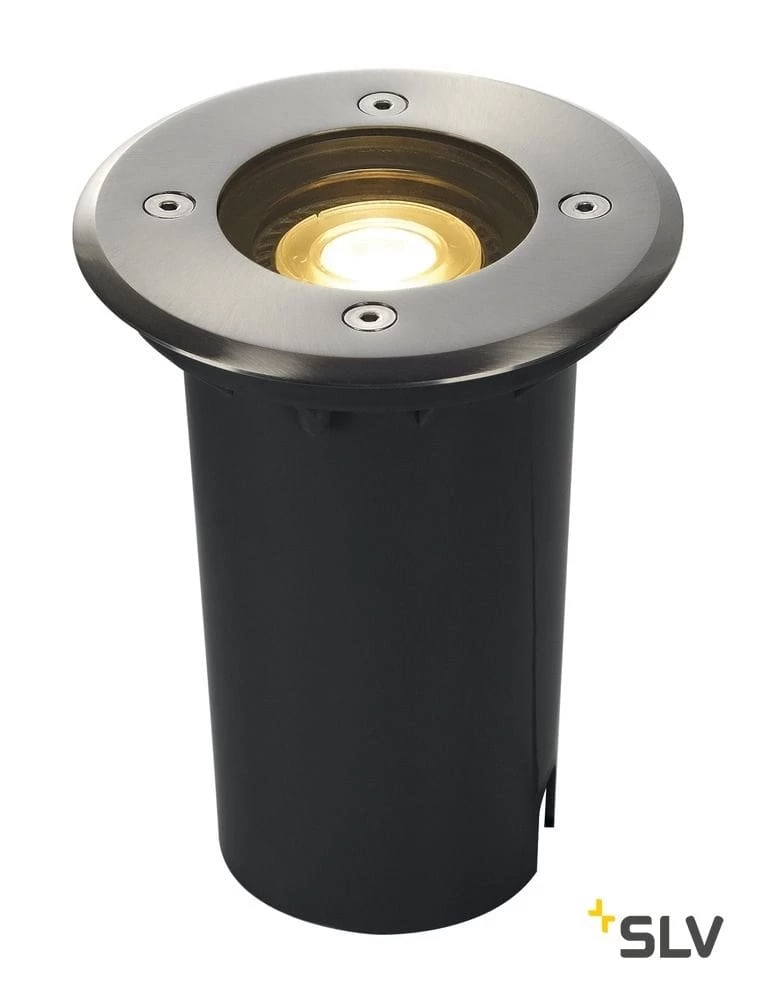 Die begehbare Hochvoltbodeneinbauleuchte SOLASTO mit runder Edelstahlblende ist mit einer GU10 Kunststofffassung ausgestattet und somit speziell und ausschließlich für LED Lampen geeignet.