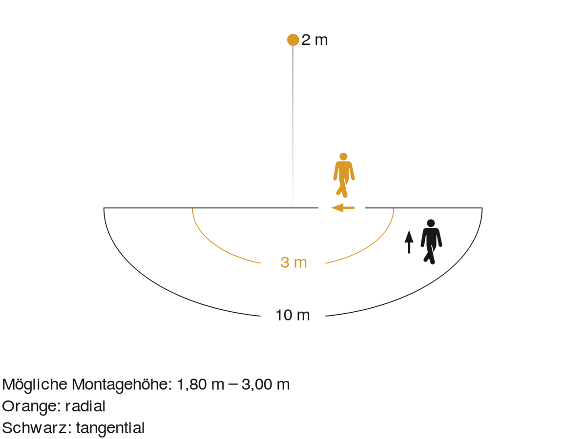 Reichweite Radial: r = 3 m (14 m²)
