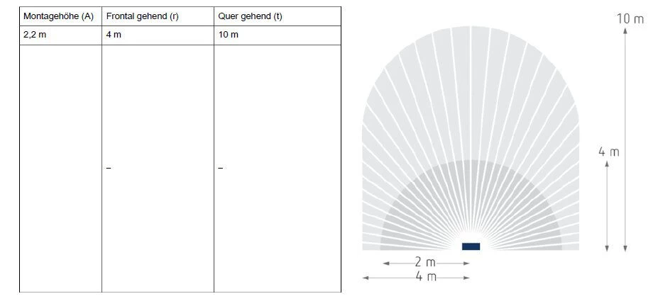 ■ Erfassungswinkel 180° bei 10 m Reichweite